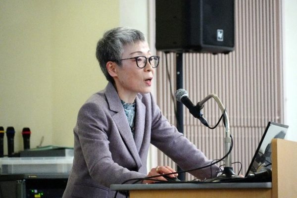 博士学生支援における金沢大学の思いや考えを伝え、博士進学を考えているの参加者を鼓舞する森本理事