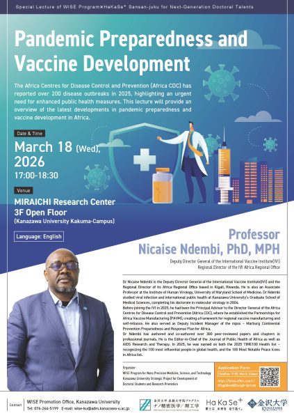 【March 18】WISE Program Special Lecture “Pandemic Preparedness and Vaccine Development” by Dr Nicaise Ndembi